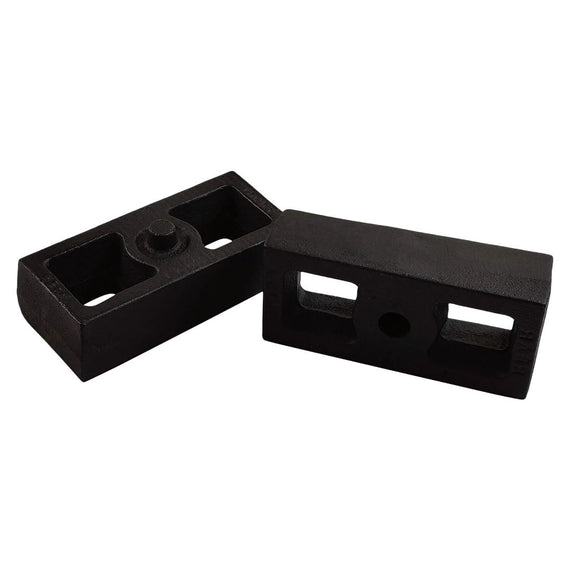 Increase the ground clearance on your Chevrolet Suburban with our Chevy Suburban 2500 6-Lug 2WD Cast Iron Lift Blocks and Square U-Bolts Kit. With this rear suspension kit, your SUV can obtain greater rear ground clearance to accommodate bigger tires, increase the rear load + towing capacity, & maintain vehicle stock specifications such as ride quality and handling characteristics. All contents are fabricated from heavy-duty material for supreme strength & durability and are guaranteed to provide exceptional off-road performance.